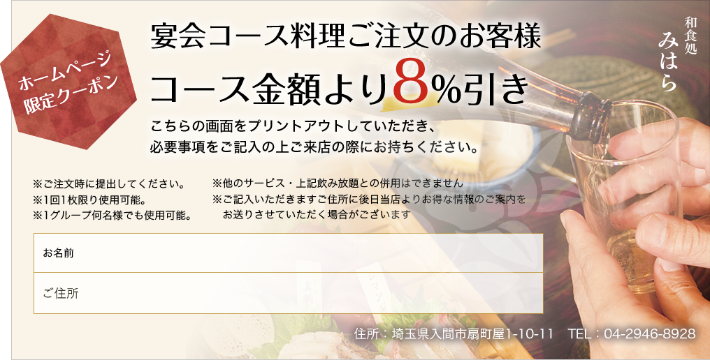 どなたでも使えるホームページ限定のお得なクーポンも是非ご利用ください。